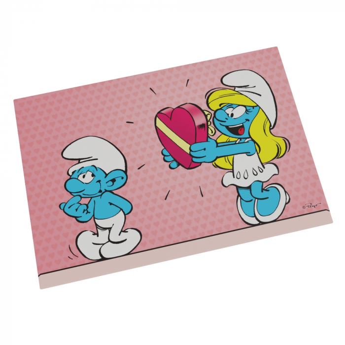 Imán rectangular decorativo Puppy Los Pitufos: Pitufina enamorada con el regalo corazón. 55x79mm.