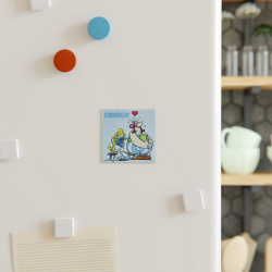Imán rectangular decorativo Asterix y Obelix: Obelix enamorado de Falbala. Dimensiones: 79x55mm.