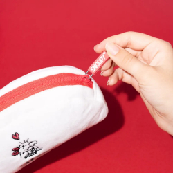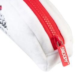 Estuche escolar de tejido peluche, Peanuts Snoopy: Falling in love. Tiene motivos bordados y cierre de cremallera. Dimensiones: 20x5x9cm.