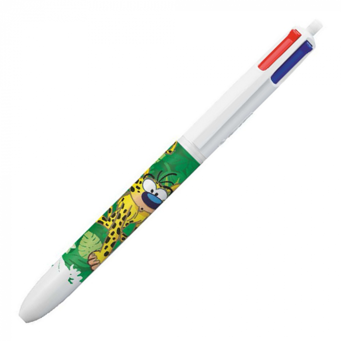 Práctico e indispensable, el bolígrafo de 4 colores te permite cambiar fácilmente de azul, negro, rojo a verde, sin cambiar de bolígrafo. Sus puntas medianas de 1,0 mm garantizan un trazo suave y preciso, con una larga duración (hasta 2 km por color). ¡Imprescindible para escribir, colorear, organizar… y revivir cada día las aventuras del Marsupilami !