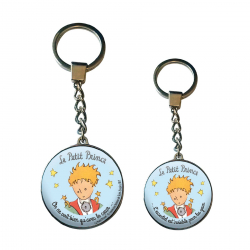 Llavero de vidrio y metal redondo de colección El Principito: Traje de gala. Diámetro: 4cm.