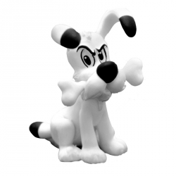 En francés este perro se llama Idéfix, que suena igual que idée fixe que significa idea fija. En la traducción de los libros al inglés se le llama Dogmatix, nombre que mantiene el concepto de idea fija (dogma) y que también incluye el concepto de perro (dog en inglés).