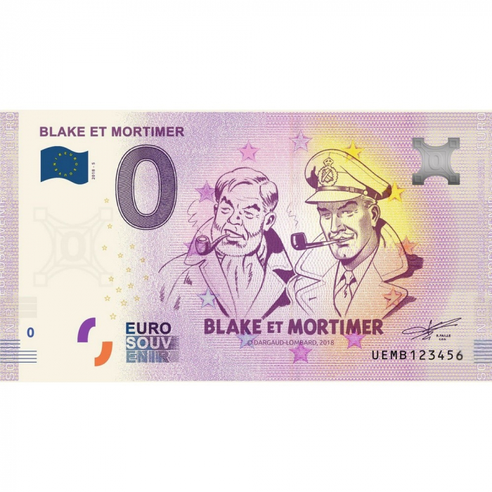 Billete de banco conmemorativo 0 € Blake y Mortimer de la nueva colección de billetes Euro Souvenir con los héroes de cómics europeos. Edición limitada y numerada a 5000 unidades.
