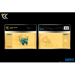 Billete de colección CK Los Pitufos: Pitufo manitas. Producto oficial en edición limitada de Cartoon Kingdom. Cada billete está cuidadosamente impreso en alta definición en papel de PVC lavable a prueba de rasgaduras y cubierto con una fina capa dorada muy brillante. Dimensiones: 14,5x7,5cm.