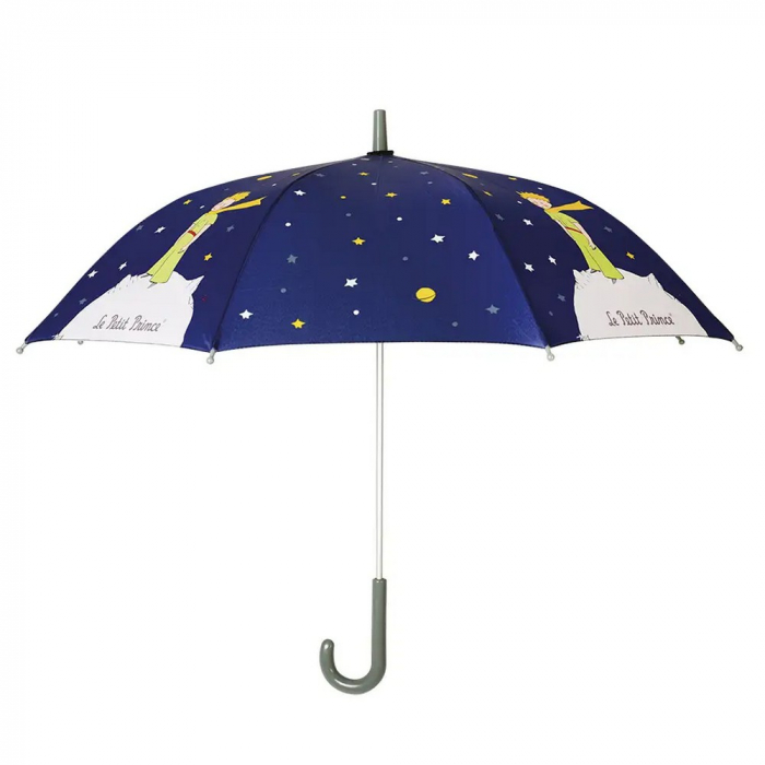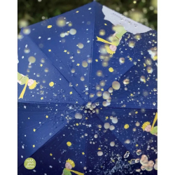 Paraguas Petit Jour El Principito en su planeta. Cuenta con un sistema de cierre seguro y un botón a presión para un cierre rápido y sencillo. Dimensiones en posición abierta: 82cm de diámetro.