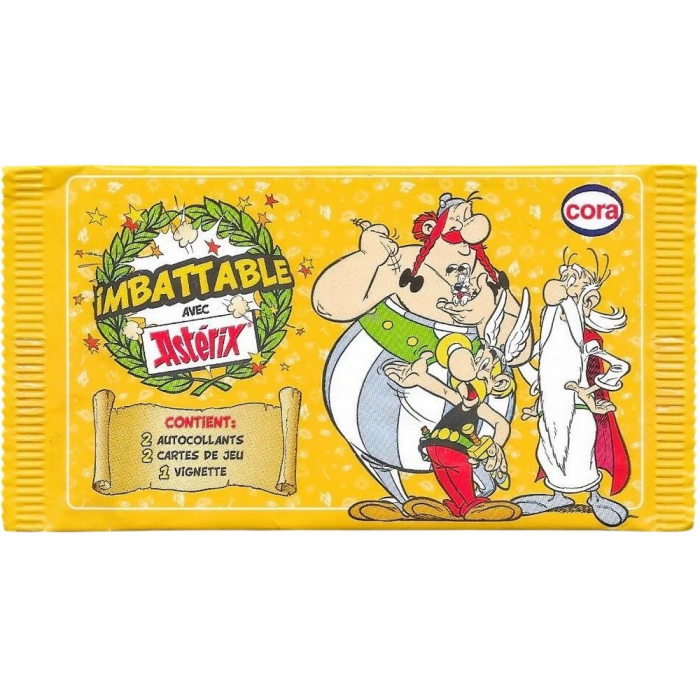 Descubre la colección de pegatinas y cartas Cora, dedicada a la tira cómica favorita de Francia: Astérix. Este pack contiene 2 pegatinas, 2 cartas de juego para divertirse y 1 cromo de colección.