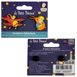 Set de 2 Pin's esmaltados con la imagen del Principito. Basado en los dibujos originales de Antoine de Saint-Exupéry. Producto con licencia oficial de El Principito: Avión, Zorro.