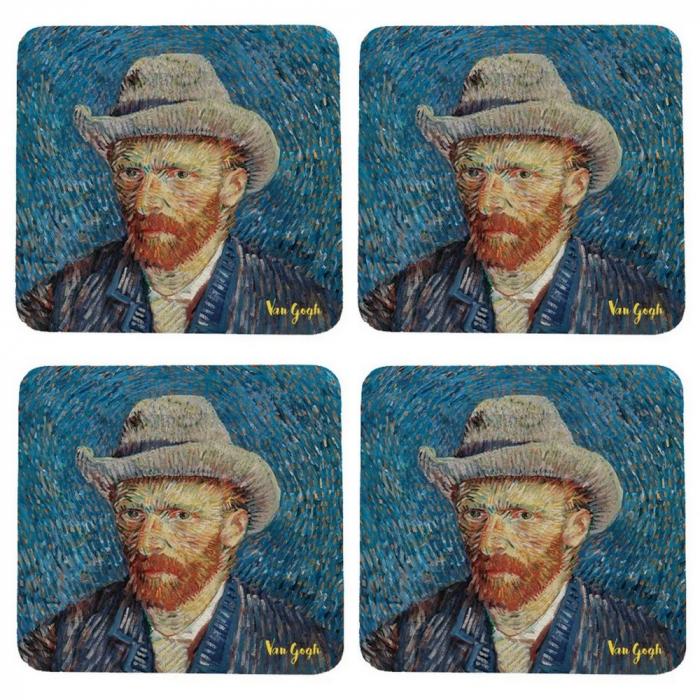 Set de 4 posavasos Enesco, Vincent Van Gogh: Retrato. Dimensiones: 10x10cm.