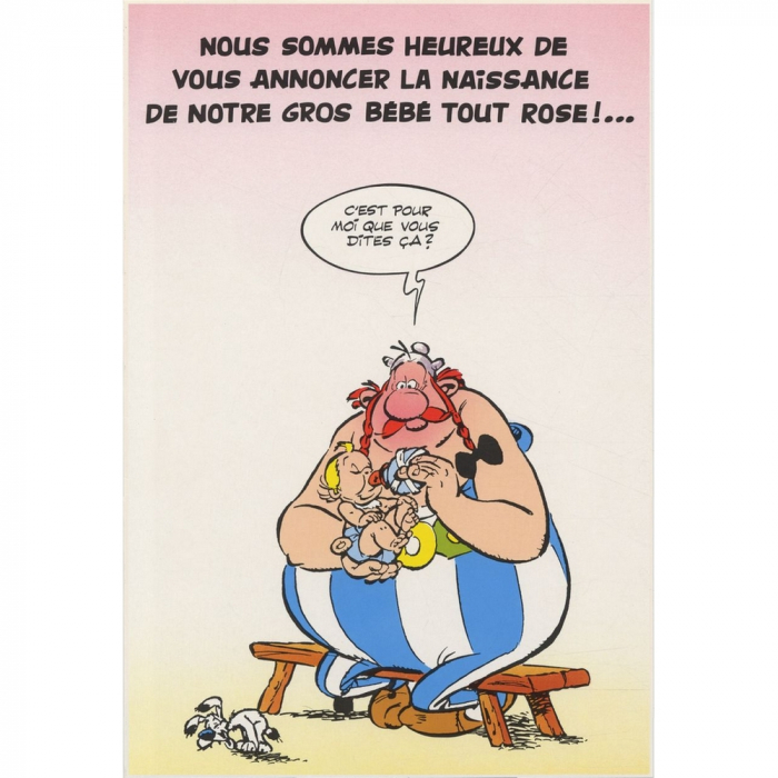 Tarjeta de felicitación XL Astérix et Obélix: Nous sommes heureux de vous annoncer la naissance de notre gros bébé tout rose !… Sobre incluido. Dimensiones: 22x33cm.