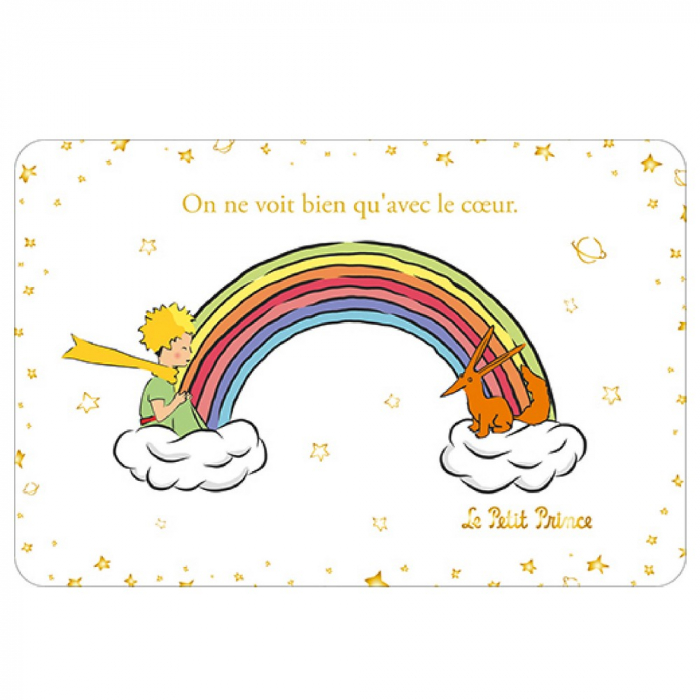 Postal de colección de la marca Kiub El Principito con el arcoíris. 15x10cm.