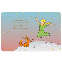 Postal de colección de la marca Kiub El Principito y el Zorro con las estrellas. 15x10cm.