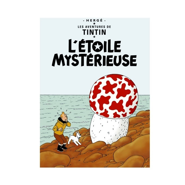 Esta postal representa la portada original del albúm de Tintín en Francés: L'étoile mystérieuse.
