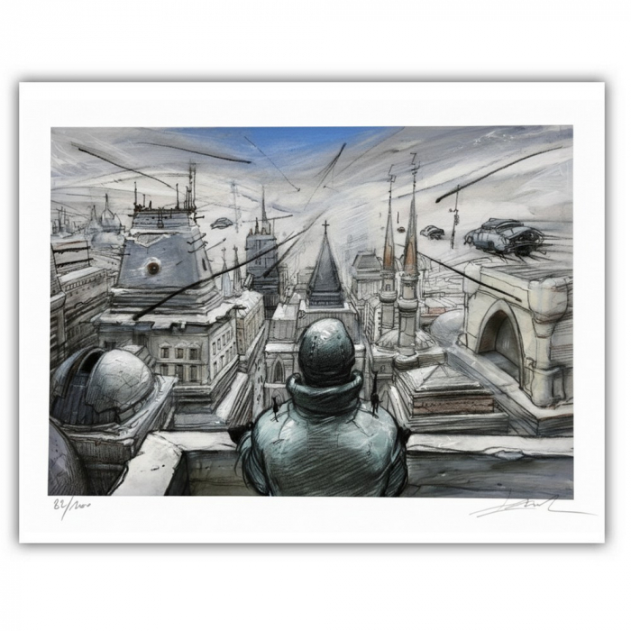 Estampa de pigmento artístico de un dibujo original de Enki Bilal. Papel Hahnemuhle Photo Rag 308g. Edición limitada y numerada a 100 unidades con certificado de autenticidad, firmado a mano por Enki Bilal. 50x40cm. Monstruo.