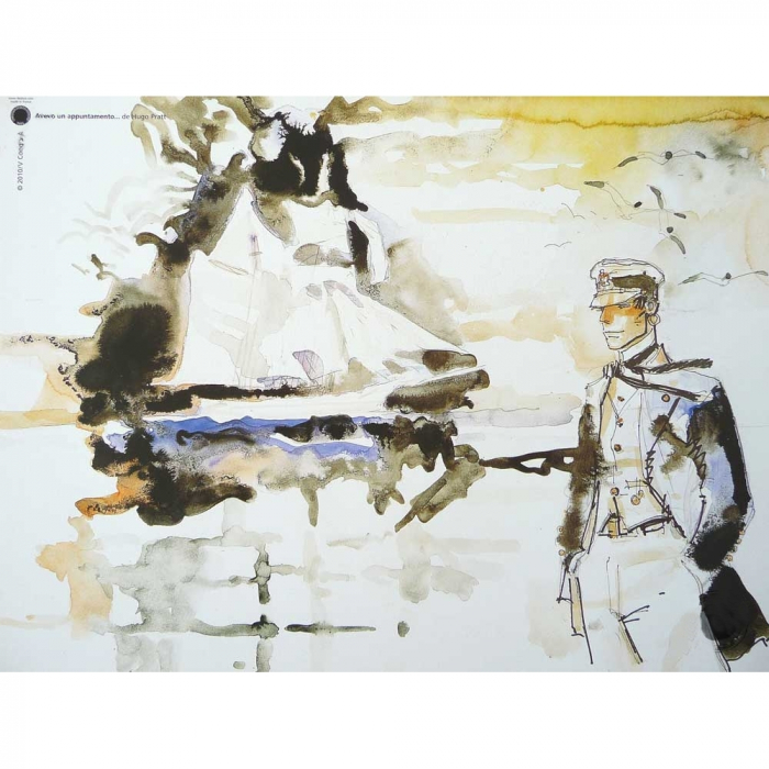 Este cartel offset del cómic Corto Maltés, Hugo Pratt está impreso en papel de alta calidad satinado grueso. 24x18cm. Avevo un Appuntamento.