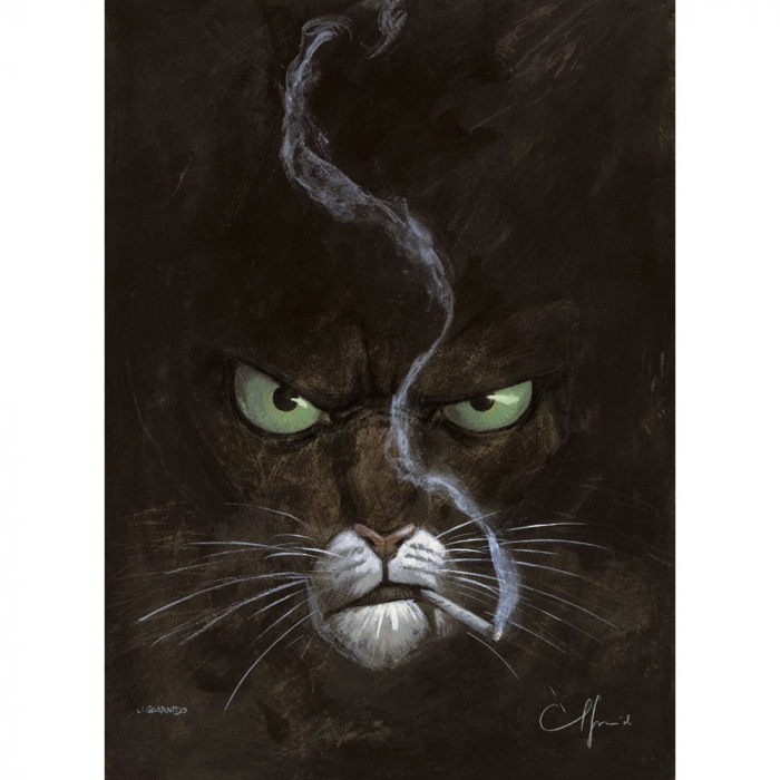 Este cartel offset del cómic Blacksad de Juanjo Guarnido está impreso en papel de alta calidad Fedrigoni Stucco Old Mill 250g. 50x70cm. Un lugar entre las sombras. Firmado a mano por Juanjo Guarnido.