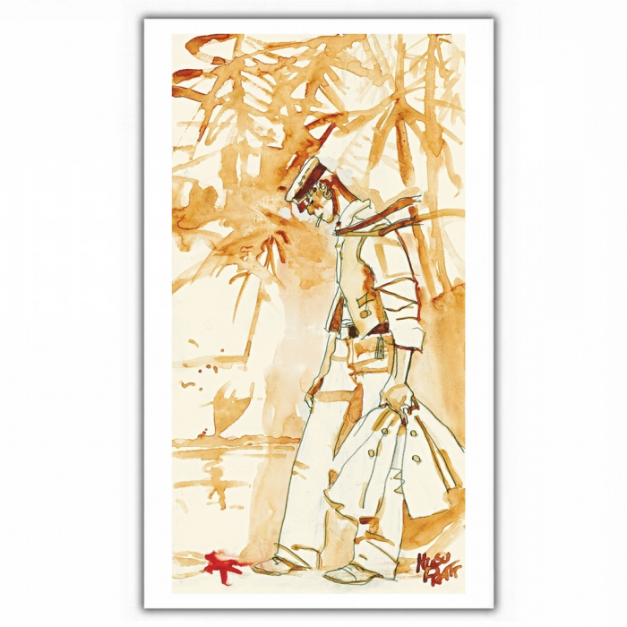 Este cartel offset del cómic Corto Maltés, Hugo Pratt está impreso en un papel de calidad similar a una impresión pigmentada. Edición limitada a 500 unidades con certificado de autenticidad numerado. 35x60cm. Pacífico.