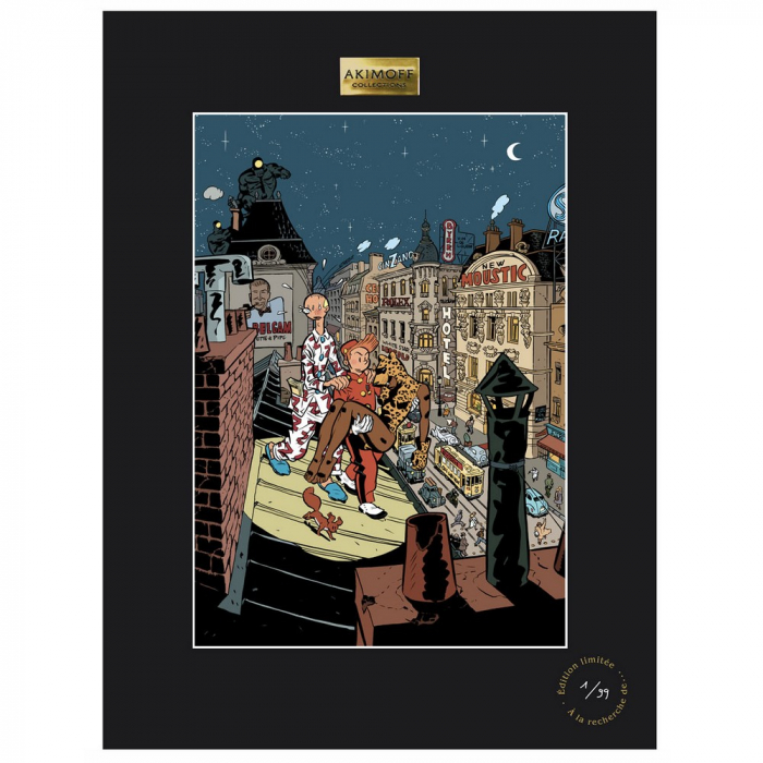 Este cartel offset del cómic Spirou de Olivier Schwartz está impreso en papel de alta calidad grueso Conquéror Connoisseur 100% algodón / 315g. Enmarcada en una Marie-Louise negra adornada con una placa de peltre Akimoff Collections. Edición limitada y numerada a 99 unidades. Dimensiones: 30x40cm. La Mujer Leopardo.