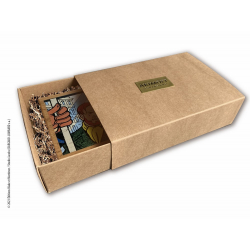 Las ilustraciones seleccionadas del álbum La Marca Amarilla están meticulosamente impresas en ambas caras del talismán de roble macizo. Esta impresión de alta calidad reproduce fielmente los colores originales mientras revela la veta de la madera. Este producto está hecho a mano en Francia.
