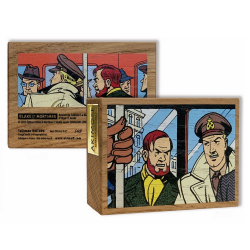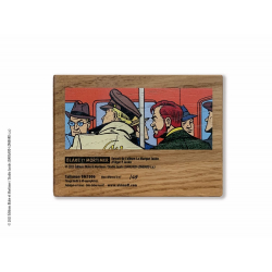 Talismán doble cara de madera roble macizo de Turena, Francia del fabricante Akimoff, Blake y Mortimer del álbum La Marca Amarilla: en el autobús. Serie limitada a 49 ejemplares y numerada a mano de 1 a 49.