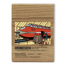 Talismán doble cara de madera roble macizo de Turena, Francia del fabricante Akimoff, Blake y Mortimer del álbum El enigma de la Atlántida: Magón, el Phulacontarch (capitán de la guardia) - El monorraíl. Serie limitada a 49 ejemplares y numerada a mano de 1 a 49.
