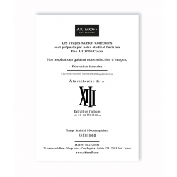 Este cartel offset del cómic XIII de William Vance y Jean Van Hamme está impreso en papel de alta calidad grueso Conquéror Connoisseur 100% algodón / 315g. Enmarcada en una Marie-Louise negra adornada con una placa de peltre Akimoff Collections. Edición limitada y numerada a 99 unidades. Dimensiones: 30x40cm. Reflexión.