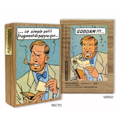 Talismán doble cara de madera roble macizo de Turena, Francia del fabricante Akimoff, Blake y Mortimer del El misterio de la Gran Pirámide: Goddam !!! Serie limitada a 59 ejemplares y numerada a mano de 1 a 59.
