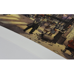 Este cartel offset del cómic Blacksad, Juanjo Guarnido está impreso en un papel de calidad similar a una impresión pigmentada. Edición limitada y numerada a 150 unidades con certificado de autenticidad, firmado a mano por Juanjo Guarnido. 60x35cm. Escena nocturna.