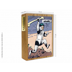 Talismán doble cara de madera roble macizo de Turena, Francia del fabricante Akimoff, Blake y Mortimer del Álbum La trampa diabólica: Mortimer al ataque. Serie limitada a 59 ejemplares y numerada a mano de 1 a 59.