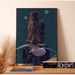 Producto con licencia oficial en edición de arte impresa en papel Novatech semi-mate 250g. Marco no proporcionado. Moebius Starwatcher - Ángel, Jean Giraud. Dimensiones: 50x70cm.