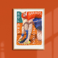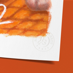 Producto con licencia oficial en edición de arte impresa en papel Fedrigoni de 200g. Marco no proporcionado. Impreso en Francia. Sello ciego en la esquina inferior derecha que certifica su autenticidad. Roland-Garros París 2022. Louise Sartor.