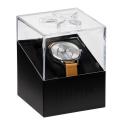 Este reloj Tintín diseñado en Bélgica está marcado con el dibujo de la cabeza de Tintín y Milú en la tapa posterior del reloj y se vende en una caja BECUBIC del mismo color con el logotipo de Tintin grabado en ambos lados.