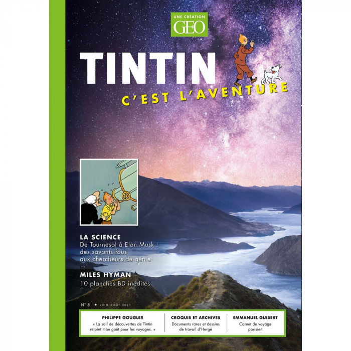 Viajó por todo el mundo, exploró fondos marinos en busca de tesoros perdidos... Desde los desiertos del Sahara hasta las cumbres del Himalaya, desde templos incas hasta cráteres lunares, dejando a millones de lectores el sabor de la aventura. Así fue la vida del reportero Tintín. Revista trimestral Tintín c'est l'aventure Nº8: la Science.