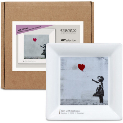 Cuenco decorativo en porcelana de alta calidad de la marca alemana Könitz, Banksy: Niña con globo. Ideal para un regalo, compatible con microondas y lavavajillas. Dimensiones: 13x13cm.