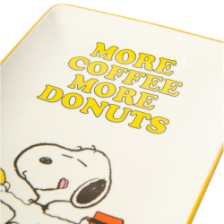 Bandeja en porcelana Peanuts, Snoopy: More coffee, more donuts. Elaborada en porcelana de alta calidad con un acabado liso y brillante, esta bandeja es perfecta para guardar llaves, monedas, joyas o pequeños objetos de uso diario. Decorativa y funcional, aporta personalidad y un toque nostálgico a entradas, escritorios, mesitas de noche o salas de estar.. Dimensiones: 16x1,6x22cm.