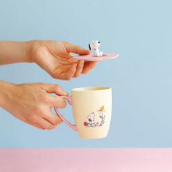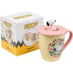 Taza de cerámica de alta calidad con acabado brillante, decorada con Erik Peanuts, Snoopy y flores. Incluye una tapa de silicona con relieve que ayuda a mantener la temperatura del líquido, evitando que se enfríe rápidamente. La taza es apta para microondas y lavavajillas. La tapa no es apta para microondas ni lavavajillas. Capacidad: 350ml.