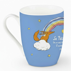Taza mug con cuchara de porcelana de la marca Enesco El Principito: pintando un arcoíris. Basado en los dibujos originales de Antoine de Saint-Exupéry. Producto con licencia oficial de El Principito. Altura: 7cm.