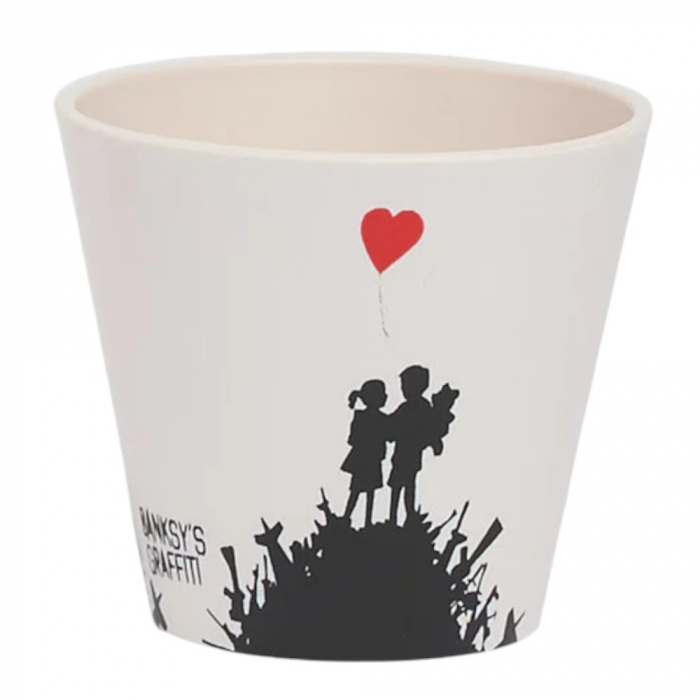 Taza de café expreso Banksy: Niños sobre armas. Fabricado con RPET (PET reciclado) para uso alimentario. Perfecto para bebidas frías y calientes. Sin olor ni sabor (libre de BPA). Resistencia térmica +120° -20°. Ideal para un regalo, apto para microondas y lavavajillas. 90ml.