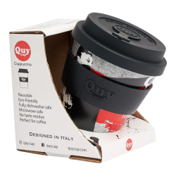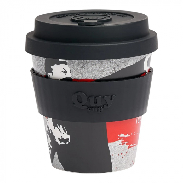 Taza de café para llevar de Banksy: El lanzador de flores. Fabricado con RPET (PET reciclado) para uso alimentario. Tapa antigoteo patentada QuyCup, banda de silicona suave anti-escaldaduras. Perfecto para bebidas frías y calientes. Sin olor ni sabor (libre de BPA). Resistencia térmica +120° -20°. Ideal para un regalo, apto para microondas y lavavajillas. 230ml.