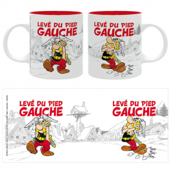 Taza de porcelana de la marca francesa The Good Gift Asterix. Ideal para un regalo, compatible con microondas y lavavajillas. El desayuno será mucho más divertido si eres fan de las míticas historietas de Astérix el Galo. Levé du pied gauche. 320ml.