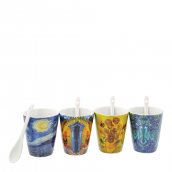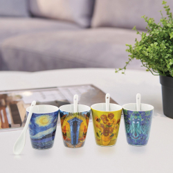 Set de 4 tazas con 4 cucharas de porcelana de la marca Enesco de calidad, Van Gogh. Producto con licencia oficial.