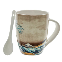 Taza mug con cuchara de porcelana de la marca Enesco Katsushika Hokusai: La gran ola de Kanagawa. Producto con licencia oficial. Altura: 10,5cm.