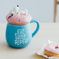Taza con figurita de dolomite de alta calidad Erik, Snoopy: Eat, Sleep, Repeat. Ideal para un regalo, compatible con microondas. El desayuno será mucho más divertido si eres fan de las míticas historietas de Snoopy. 500ml.