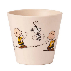 Taza mug térmica para llevar QuyCup Peanuts Snoopy: en un coche rojo. Fabricado en acero inoxidable 304 de doble pared. Mantiene las bebidas calientes durante 6 horas y las bebidas frías durante 12 horas. Libre de BPA. Tapa no hermética. No apto para lavavajillas ni microondas. 300 ml.