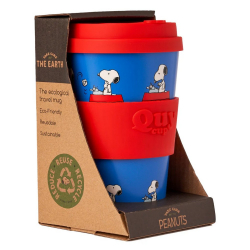 Taza de café para llevar de Peanuts Snoopy: Máquina de escribir. Fabricado con RPET (PET reciclado) para uso alimentario. Tapa antigoteo patentada QuyCup, banda de silicona suave anti-escaldaduras. Perfecto para bebidas frías y calientes. Sin olor ni sabor (libre de BPA). Resistencia térmica +120° -20°. Ideal para un regalo, apto para microondas y lavavajillas. 400ml.