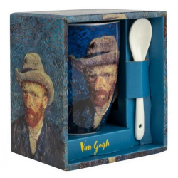 Taza mug con cuchara de porcelana de la marca Enesco Vincent Van Gogh, Retrato. Producto con licencia oficial. Altura: 10,5cm.