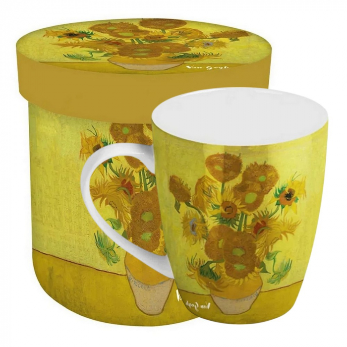 Taza de porcelana de calidad de la marca Enesco en caja de regalo Vincent Van Gogh: Los Girasoles. Ideal para un regalo, compatible con microondas y lavavajillas. Altura: 10cm.