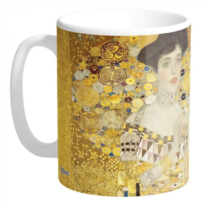 Taza de porcelana de la marca Enesco Gustav Klimt: Retrato de Adele Bloch-Bauer I. Ideal para un regalo, compatible con microondas y lavavajillas. Altura: 9,5cm.