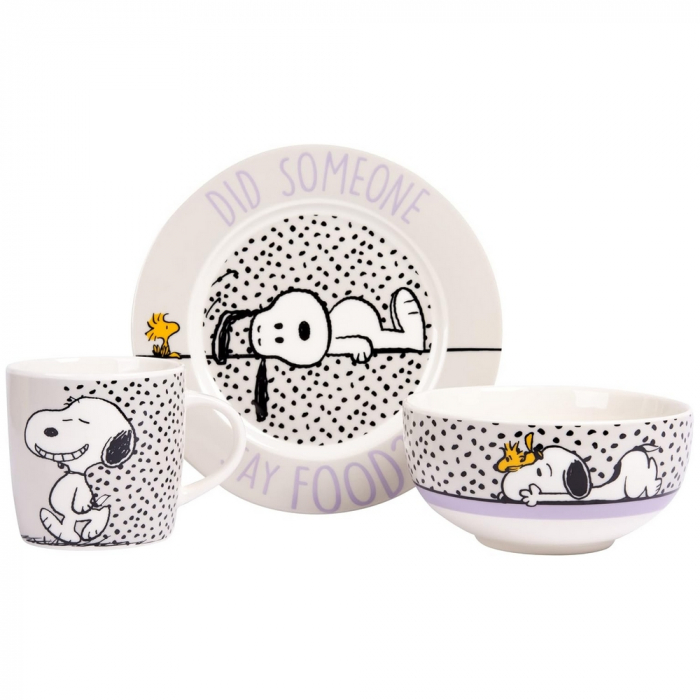 Juego de taza, tazón y plato de porcelana de alta calidad de la marca alemana United Peanuts Snoopy. Ideal para regalo, apto para microondas y lavavajillas. Desayunar será mucho más divertido si eres fan de estos icónicos personajes !!