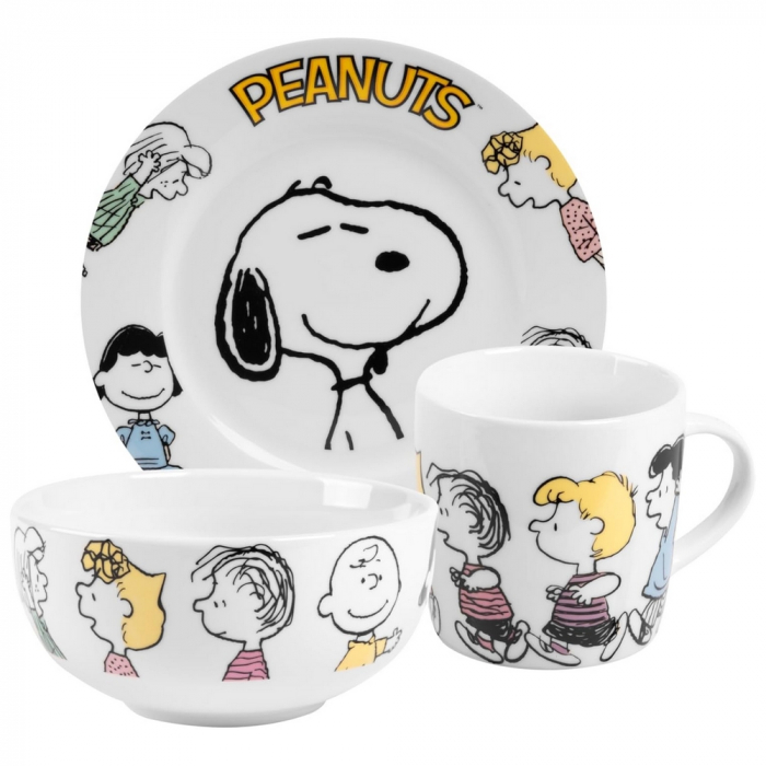 Juego de taza, tazón y plato de porcelana de alta calidad de la marca alemana United Peanuts Snoopy. Ideal para regalo, apto para microondas y lavavajillas. Desayunar será mucho más divertido si eres fan de estos icónicos personajes !!