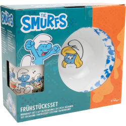Juego de taza, tazón y plato de porcelana de alta calidad de la marca alemana United Los Pitufos. Ideal para regalo, apto para microondas y lavavajillas. Desayunar será mucho más divertido si eres fan de estos icónicos personajes !!